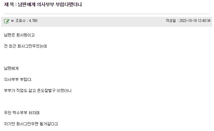 남편에게 의사 부부 부럽다 했더니 남편 반응