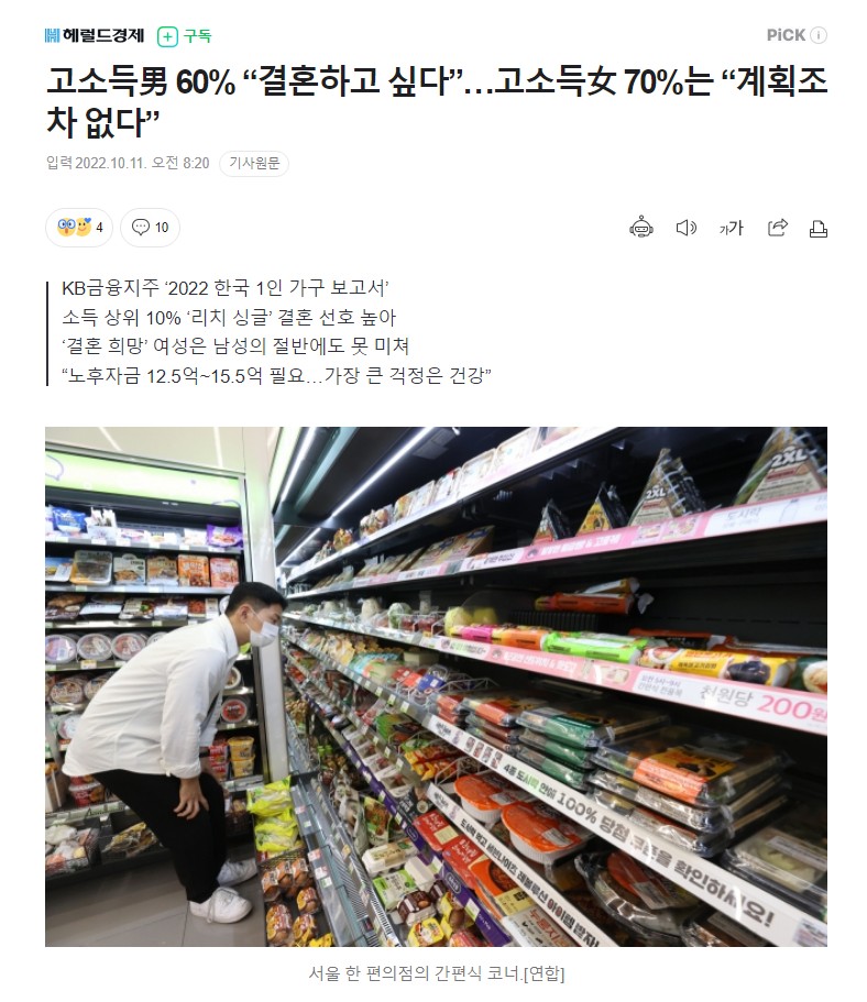 고소득남 60% 결혼하고싶다 vs 고소득녀 70% 계획조차없다