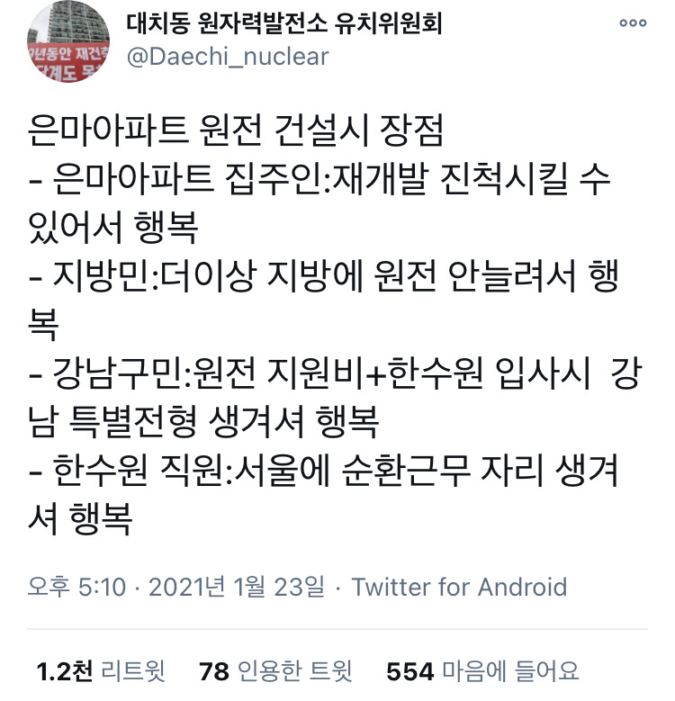 은마아파트 부지에 원전 건설시 장점 - 꾸르