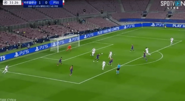 챔스 16강, 바르셀로나 vs PSG 골장면.gif