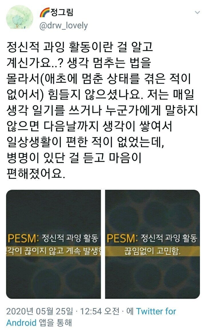 요즘 현대인에게 많은 증후군 0 6585 0 이슈야 2021.02.27 10:48 이전 글 목록으로 다음 글 요즘 현대인에게 많은 증후군쓸데없는 생각과 고민이 너무 많아서 매일 고통받음 0 HOT
