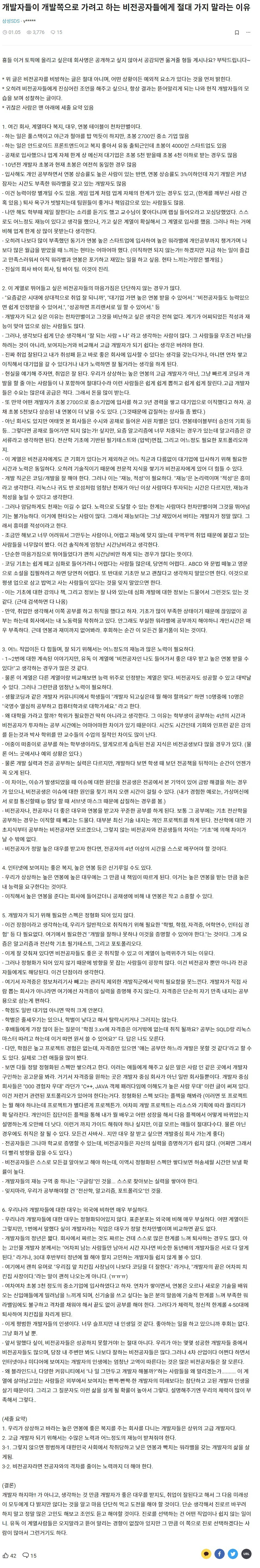 개발쪽으로 가려고 하는 비전공자들에게 절대 가지 말라는 이유 0 3328 0 이슈야 2021.02.23 09:14 이전 글 목록으로 다음 글 개발쪽으로 가려고 하는 비전공자들에게 절대 가지 말라는 이유 0 HOT