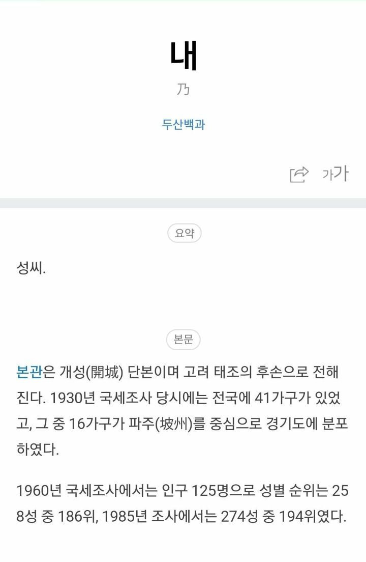 내씨는 조선에서 한참 왕씨 몰살이 진행되고 있을때에 생겨난 성씨라고 한다.