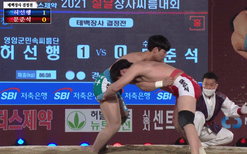 설날 태백장사 결승전에서 나온 뒤집기 기술