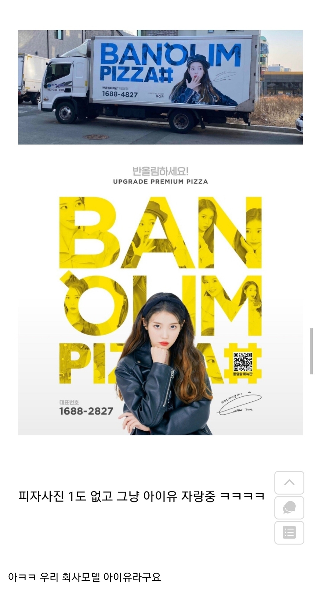 아이유 모델 된 반올림 피자 근황 글을 보고 피자 시킨 사람 0 3735 0 이슈야 2021.02.15 19:24 이전 글 목록으로 다음 글 아이유 모델 된 반올림 피자 근황 글을 보고 피자 시킨 사람 정말 아이유 보고 피자시켰는데 아 왜 아직 모델 안바꼈는데 ㅜㅜ 0 HOT