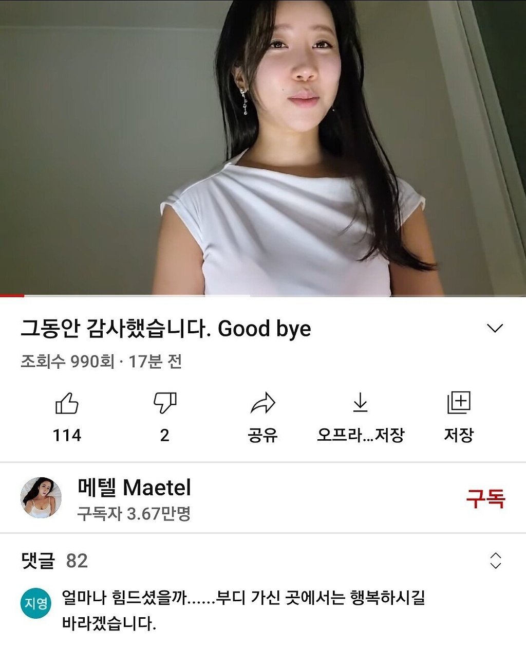 고인이 되신 bj 메텔 마지막 유튜브 업로드
