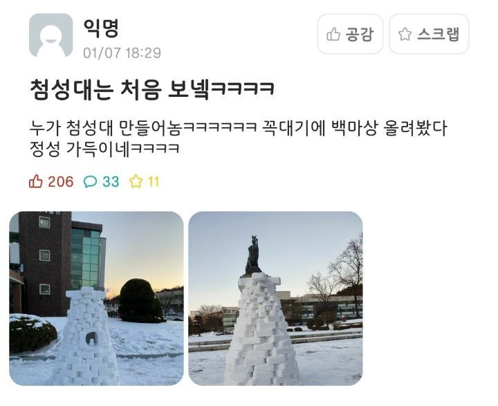 눈으로 만든 첨성대 - 꾸르