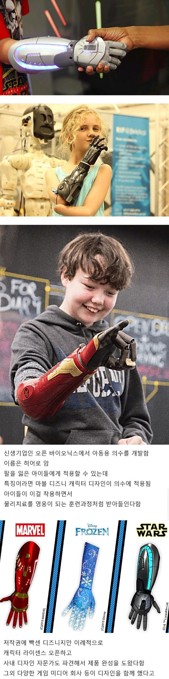 디즈니에서 캐릭터 라이센스 오픈한 아동용 의수 - 꾸르
