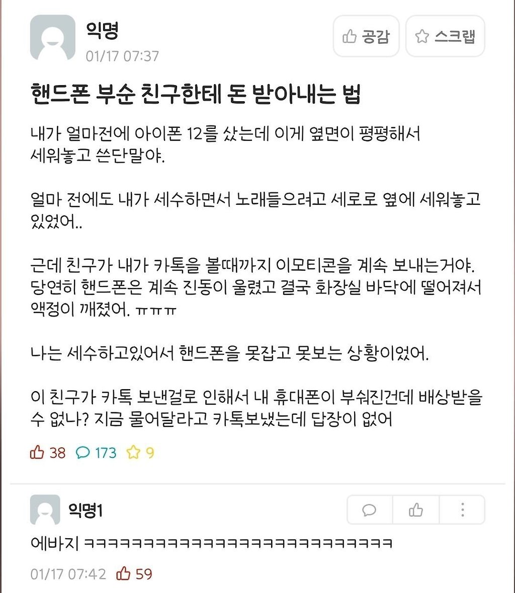핸드폰 부순 친구한테 돈 받아내는 법 - 꾸르