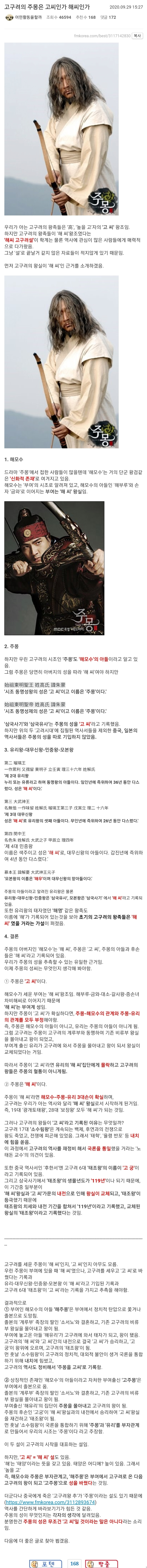 차고구려의 주몽은 고씨인가 해씨인가 - 꾸르