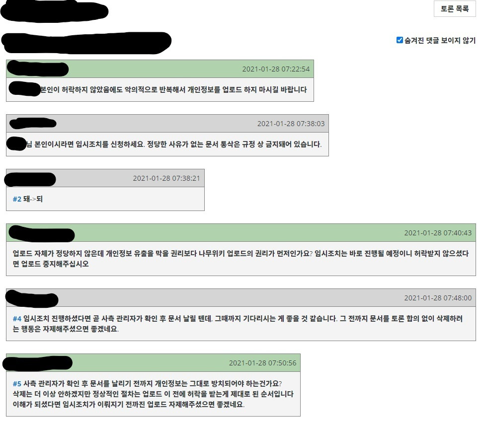 2. 삭제했으나 무단통삭(?)하지 말라며 악의적인 업로드가 반복됨