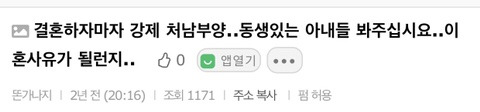 결혼하자마자 강제 처남부양, 이혼하고 싶네요