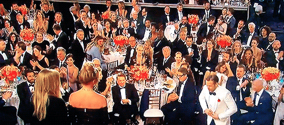 2017 골든글로브 시상식에서 수상자로 선정된 라이언 고슬링이 무대위로 올라가는 순간...