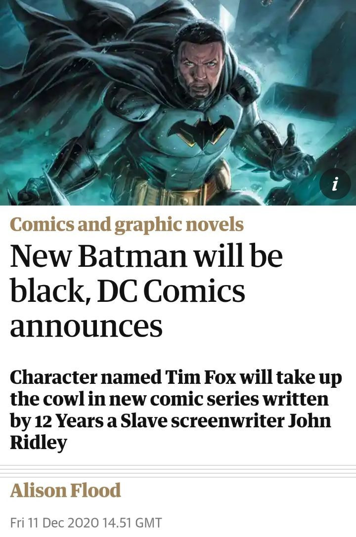 새 배트맨은 흑인이 될 것이다 DC 코믹스 발표