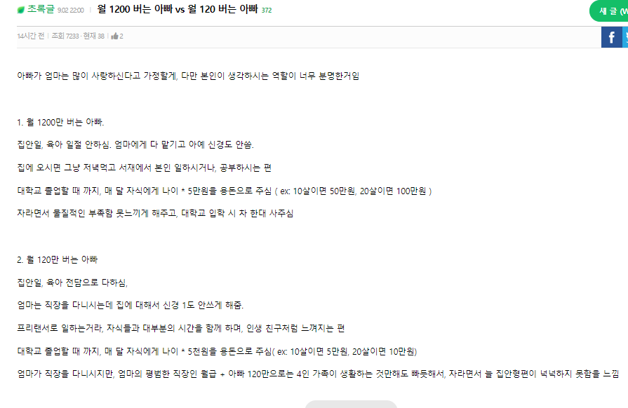 월천 벌어오는 남편 vs 월천 벌어오는 아빠