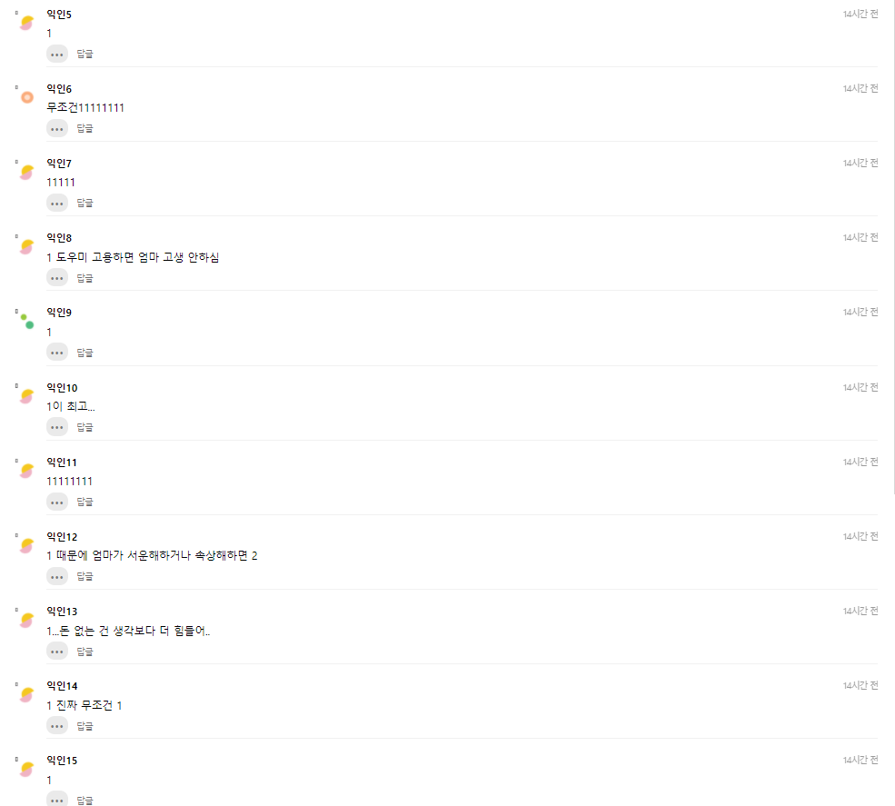 [content] => 일은 일이고 육아는 육아면 네년들도 돈벌면서 육아해라 이년들아